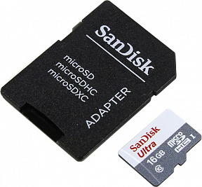 SanDisk Ultra (SDSQUNS-016G-GN3MA) microSDHC Memory Card 16Gb UHS-I U1 Class10 + microSD--) SD AdГарантия: 12 мес.